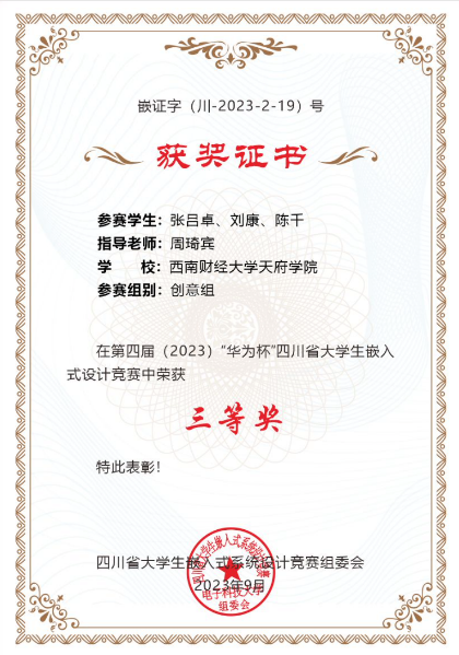 喜报|西财必赢766net手机版学子在2023年四川省大学生嵌入式设计竞赛中荣获佳绩