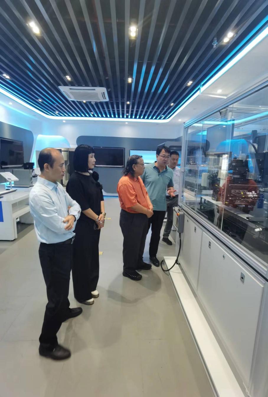 在池瑞楠、杨鸥的陪同下,蒲果泉一行先后参观了工业视觉微缩实训中心、智能机器人实训室、云计算应用实训室、大数据技术实训室、虚拟仿真实训室等。杨鸥详细介绍了各实训室的功能和用途,并重点分享了在人工智能应用领域,学院积极探索的校企合作模式,包括成立国内首个授权华为云学院鲲鹏中心,先后与大疆创新、腾讯、平安集团、科大讯飞、优必选、商汤科技、鹏城实验室、光明实验室、思谋科技等单位建立联合实验室或研发中心,推进科研成果转化落地,共同育人。