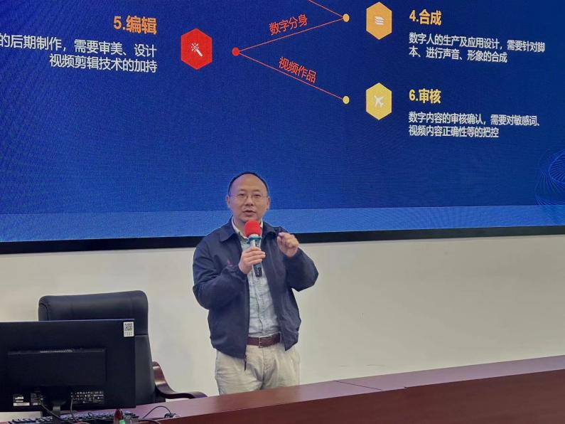 随后,姚一永代表学校向与会嘉宾的分享表示感谢,强调此次分享会是贯彻学校有关全面面向人工智能时代进行教学改革要求的实质性一步。基于前期完成学校人工智能师资研修班培训的基础,学校将针对2024届毕业生围绕数字人产业项目开展集中实训,建立学校的数字人专业人才培养基地,以期尽快切入细分行业领域,希望参会同学们把握机会,积极参与,坚持钻研,提升就业竞争力。