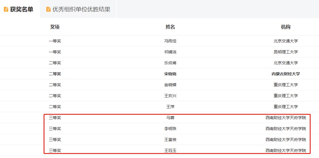 师生获奖名单截图