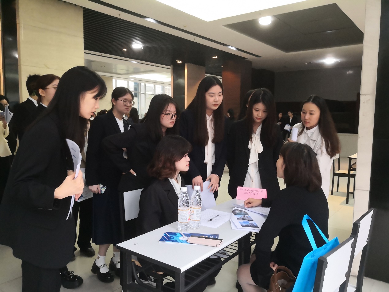 本次招聘会采取线上线下同时进行的方式,川渝两地共计49家事务所参加招聘会,提供岗位132个,拟招聘1466人,会计学院及智能金融学院共计1400余名毕业生参加该场招聘会。